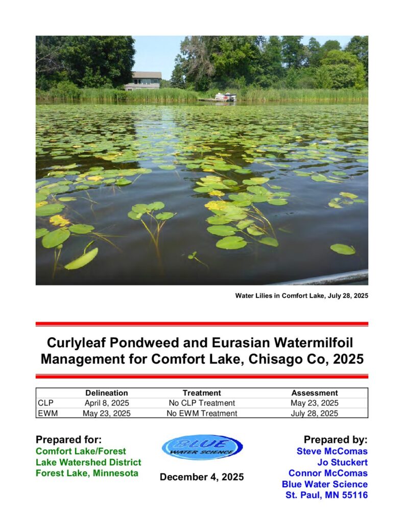 Curlyleaf Pondweed (CLP) and Eurasian Watermilfoil (EWM) Management for Comfort Lake, Chisago Co, 2025