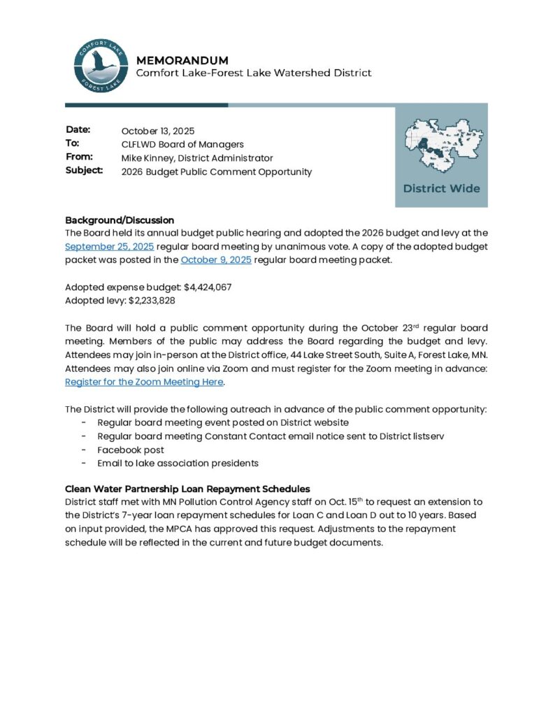 2025-10-23 Agenda Item 04 -2026 Budget Public Comment Opportunity memoBy Tori Philippi | October 16, 2025 Read More