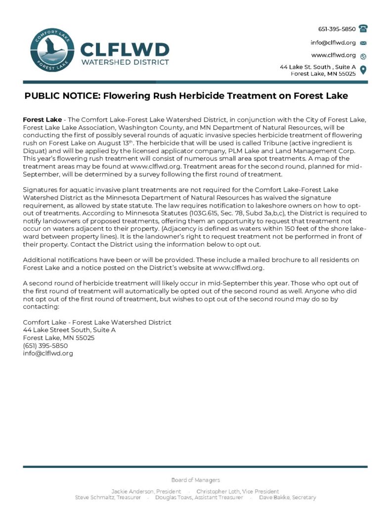 Flowering Rush Delineations, Treatments, and Assessments for Forest Lake, Washington County, Minnesota, 2025