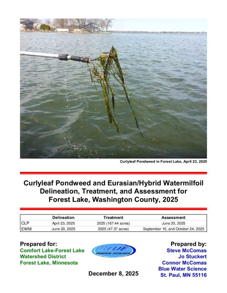 Curlyleaf Pondweed and Eurasian/Hybrid Watermilfoil Delineation, Treatment, and Assessment for Forest Lake, Washington County, 2025