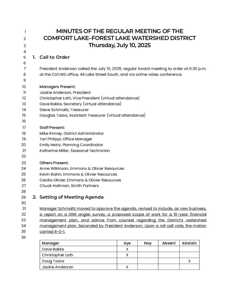 Meeting Minutes of the July 10, 2025 Regular Board Meeting