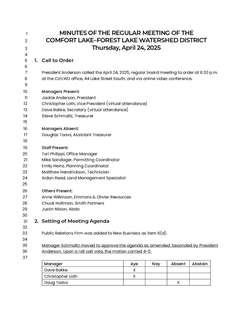 Meeting Minutes of the April 24, 2025 Regular Board Meeting