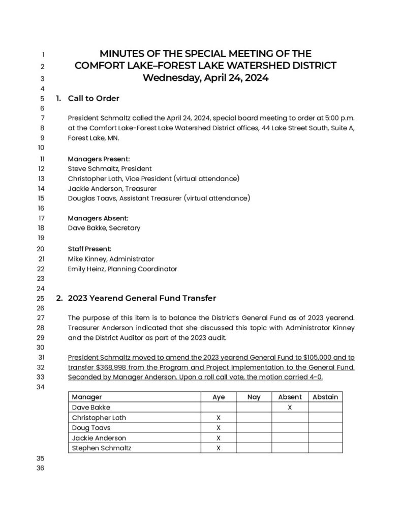 Meeting Minutes of the April 24, 2024 Special Board Meeting