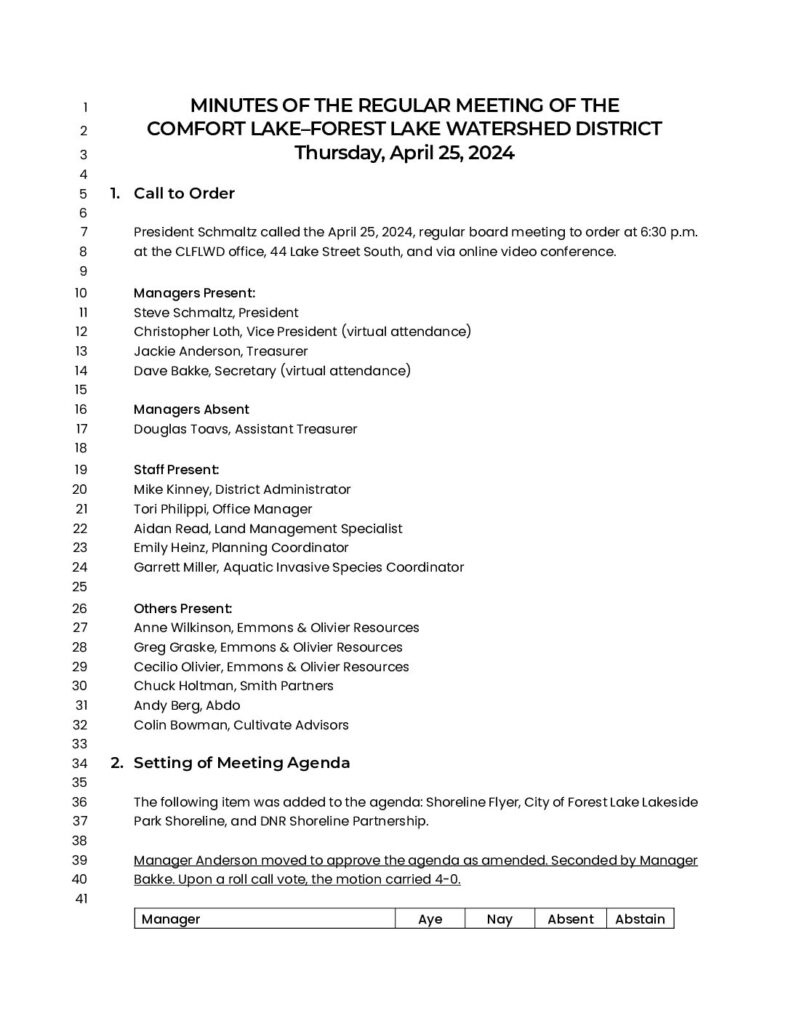 Meeting Minutes of the April 25, 2024 Regular Board Meeting