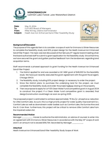 2024-05-22 Agenda Item 07a – Heath Ave Iron Enhanced Sand Filter Feasibility Study