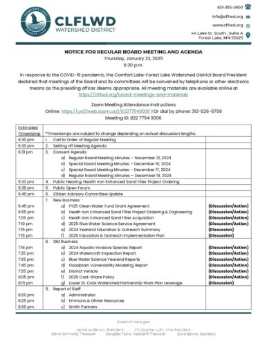 2025-01-23 Agenda Item 02 – Notice for Regular Board Meeting and AgendaBy Tori Philippi | January 17, 2025 Download File Type: pdf File Size: 140 KB Categories: Board Meetings Tags: Agenda