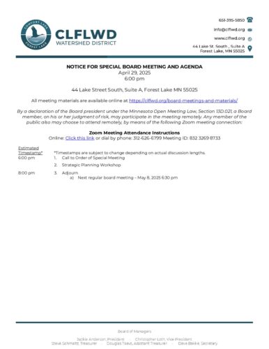 2025-04-29 Agenda Item 01 – Notice for Special Board Meeting and Agenda – 29 April 2025By Tori Philippi | April 25, 2025 Download File Type: pdf File Size: 135 KB Categories: Board Meetings Tags: Agenda