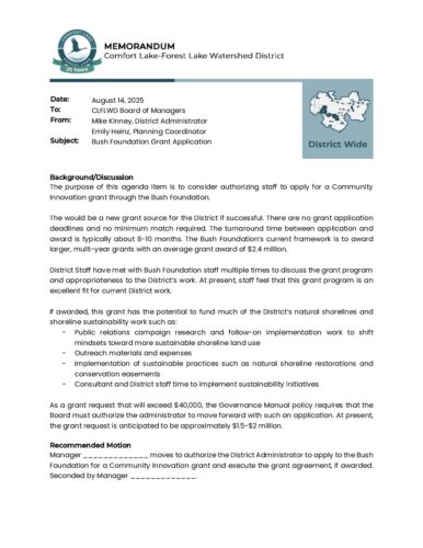 2025-08-28 Agenda Item 06a – Bush Foundation Grant ApplicationBy Tori Philippi | August 22, 2025 Download File Type: pdf File Size: 224 KB Categories: Board Meetings Tags: District Wide, Memo