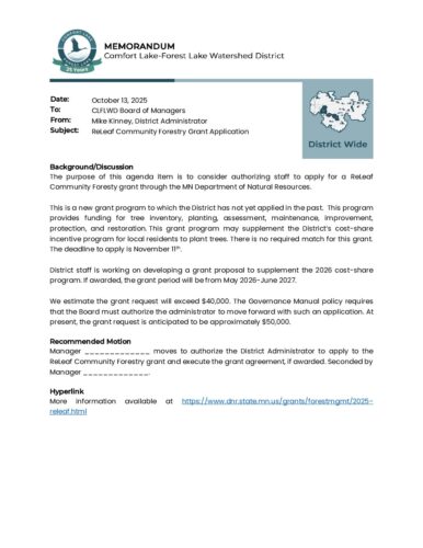 2025-10-23 Agenda Item 03c -ReLeaf Community Forestry Grant ApplicationBy Tori Philippi | October 16, 2025 Download File Type: pdf File Size: 143 KB Categories: Board Meetings Tags: District Wide, Memo