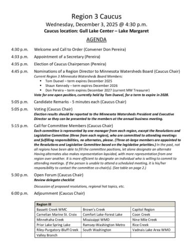 2025-11-20 Agenda Item 08a – MN Watersheds Region 3 Caucus PACKETBy Tori Philippi | November 13, 2025 Download File Type: pdf File Size: 497 KB Categories: Board Meetings