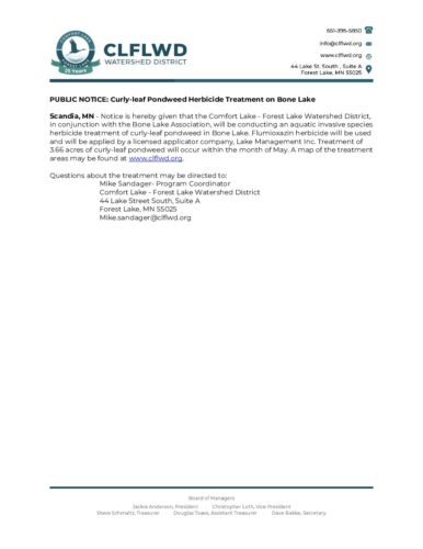 2025 CLP Public Notice – Bone LakeBy Tori Philippi | May 5, 2025 Download File Type: pdf File Size: 1 MB Categories: Aquatic Invasive Species Tags: Bone Lake, Public Notice