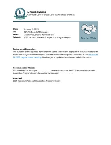 2026-01-22 Agenda Item 07b – 2025 Yearend Watercraft Inspection Program ReportBy Tori Philippi | January 20, 2026 Download File Type: pdf File Size: 881 KB Categories: Board Meetings Tags: District Wide, Memo