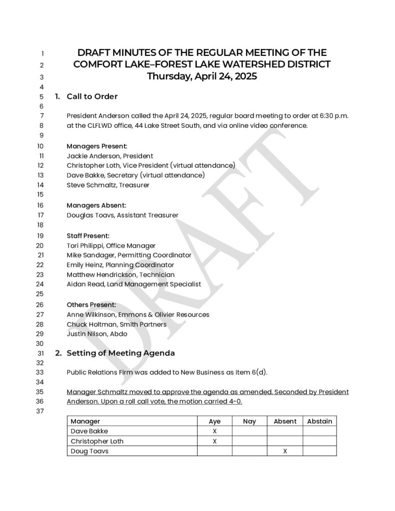Meeting Minutes of the April 24, 2025 Regular Board Meeting