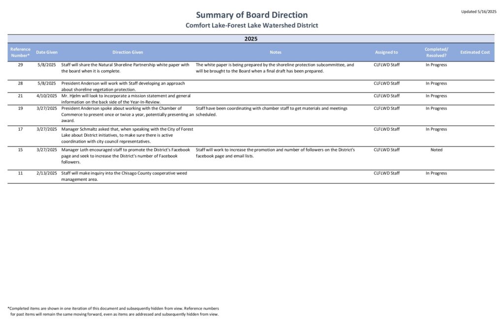 2025-05-22 Agenda Item 11 – Summary of Board Direction