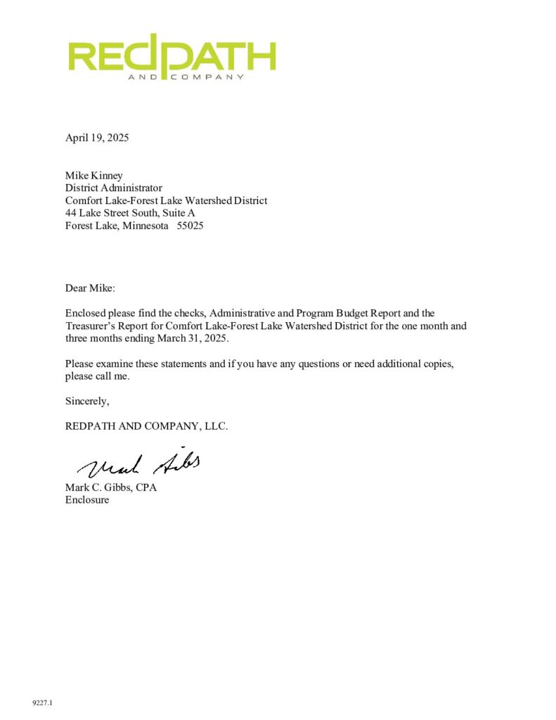 Summary of District activities in 2024 including administration, programs, projects, audit, budget, work plan.